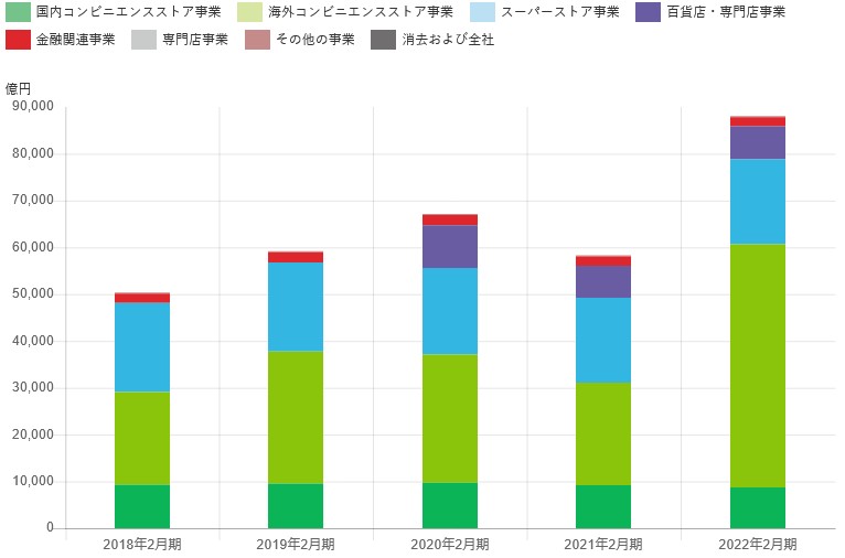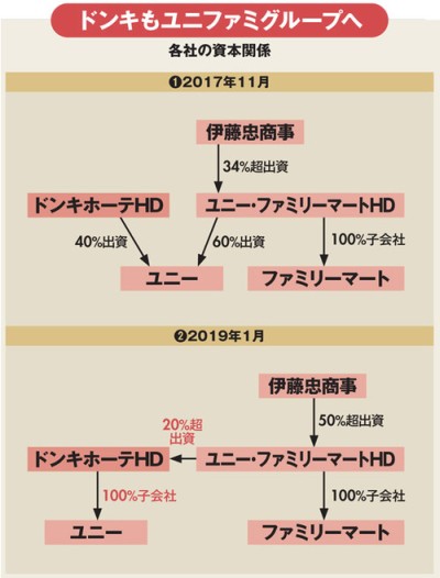 セブン&アイ・ホールディングスの事業別営業収益は次のようになっています(セグメント情報|株主・投資家(IR)|セブン&アイ・ホールディングス)。 ![]() 一方、事業別営業利益は次のようになっています。スーパーと百貨店は、そこそこの売り上げはあるものの、ほとんど儲かっていません。百貨店は赤字です。一方、国内コンビニは売り上げは多くないものの、全体の利益の半分を叩き出しています。 ![]() そごう・西武は、経営不振の百貨店同士が統合した会社です。セブン&アイ・ホールディングスが買収しましたが、再建の目途が立たないので、売却を予定しています(そごう・西武の売却を無期限で再延期 セブン&アイが正式発表)。スーパー部門では、総合スーパーのイトーヨーカドーの業績が芳しくありません。そこで、店舗を大量に閉鎖する予定です(イトーヨーカドーが「32店舗の大量閉鎖」へ…そのウラで始まる「小売業界最終戦争」の“過酷な実態”)。 ファミリーマートをめぐる資本関係も、次のように大きく変化しています(ドンキがファミマの2割出資を受けてまでユニーを買収したかった理由 )。 ![]() ユニーは中部を地盤とする総合スーパーで傘下にコンビニエンスストア、サークルKサンクスがありました。 まず、ファミリーマートとユニーが経営統合し、持株会社ユニー・ ファミリーマートHDを新設し、それぞれがその子会社となりました。その一方で、ユニーはドンキホーテHD(現PPHI)からも40%の出資を受けるという変則的な資本形態となりました。 次いで、ドンキホーテHDがユニー・ ファミリーマートHDからユニーの株式60%を譲り受け、ユニーを100%子会社とします。このような過程を経て、ユニーを解体し、コンビニ部門をファミリーマートが吸収し、総合スーパー部門をドンキホーテが吸収した形となりました。 ユニー・ファミリーマートHDは、ユニー株式の譲渡に伴い、公開買付けにより、ドンキホーテHDの株式20.17%の取得を試みましたが失敗し(ユニー・ファミマHD/ファミマを吸収合併「ファミリーマート」に社名変更)、出資比率は5.54%に留まっています(株式状況|PPIH(旧ドンキホーテHD))。なお、ユニー・ ファミリーマートHDは、持株会社体制から単独事業会社へ経営体制の変更し、現在の社名はファミリーマートになっています。 ドンキホーテは、ユニーの総合スーパー店舗をそのまま残し、ドンキホーテとコラボさせています。たとえば、名古屋市のアピタ東海通店の場合は、次のように、UNYとMEGAドンキの看板2枚を掲げています(ユニー、ドンキ/名古屋市「アピタ東海通店」をフルサイズのダブルネーム業態に)。ロゴはいずれも、ドンキホーテの黄色と黒が基調となっています。 ![]() 1階は専門店と食品コーナーとなっていて、ドン・キホーテらしい新メニューも導入しています。 ![]() 2階は住居関連品や衣料品コーナーとなっていて、ドン・キホーテらしい展示、品ぞろえとなっています。 ![]() 総合スーパーは、食品以外の衣料品や生活雑貨の不振が業績悪化の原因となっています。しかし、食品に集中するためには、全体の売り場が広すぎるという問題があります。一方、ドン・キホーテは、MEGAドン・キホーテ(MEGAドン・キホーテ|驚安の殿堂 ドン・キホーテ)の出店を積極的に進めています。広すぎる売り場を持て余していたユニーと、大型出店先を探していたドン・キホーテの利害が一致したといえそうです。 パンは地元企業がほぼ独占 2021-2022年の全国のパン業界の売上高ランキングは次のようになっています( パン業界のランキングや動向、現状などを研究)。
