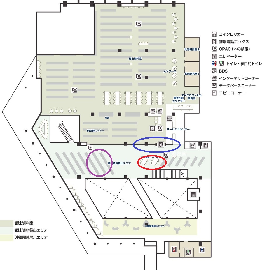 沖縄県立図書館の3階は、エントランスと子供向け書籍の閲覧スペースになっています(館内案内図 - 沖縄県立図書館)。