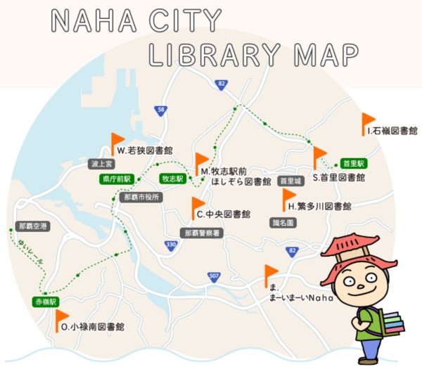 ネットショッピングでは、注文した商品を実店舗で受け取ることもできます。図書館の予約貸し出しサービスは、それと同じように、「予約した本=注文した商品」を「最寄りの図書館分館=最寄りの実店舗」で受け取る形となります。 沖縄県立図書館と那覇市立図書館でも、この予約貸し出しサービスを提供しています。予約貸し出しサービスには、本の貸し出し確保と配送という2つの機能があります。予約が完了した本は貸し出しが確保され、指定した受け取り場所に配送されます。県立図書館では、本は直接受け取るため、配送サービスはありません。 那覇市立図書館には、7つの図書館と1つの連携図書館があり、那覇市立図書館の利用者カードで、8つの図書館すべての蔵書を予約貸し出しできます。予約した本の受け取り場所が8か所あるのは便利です。